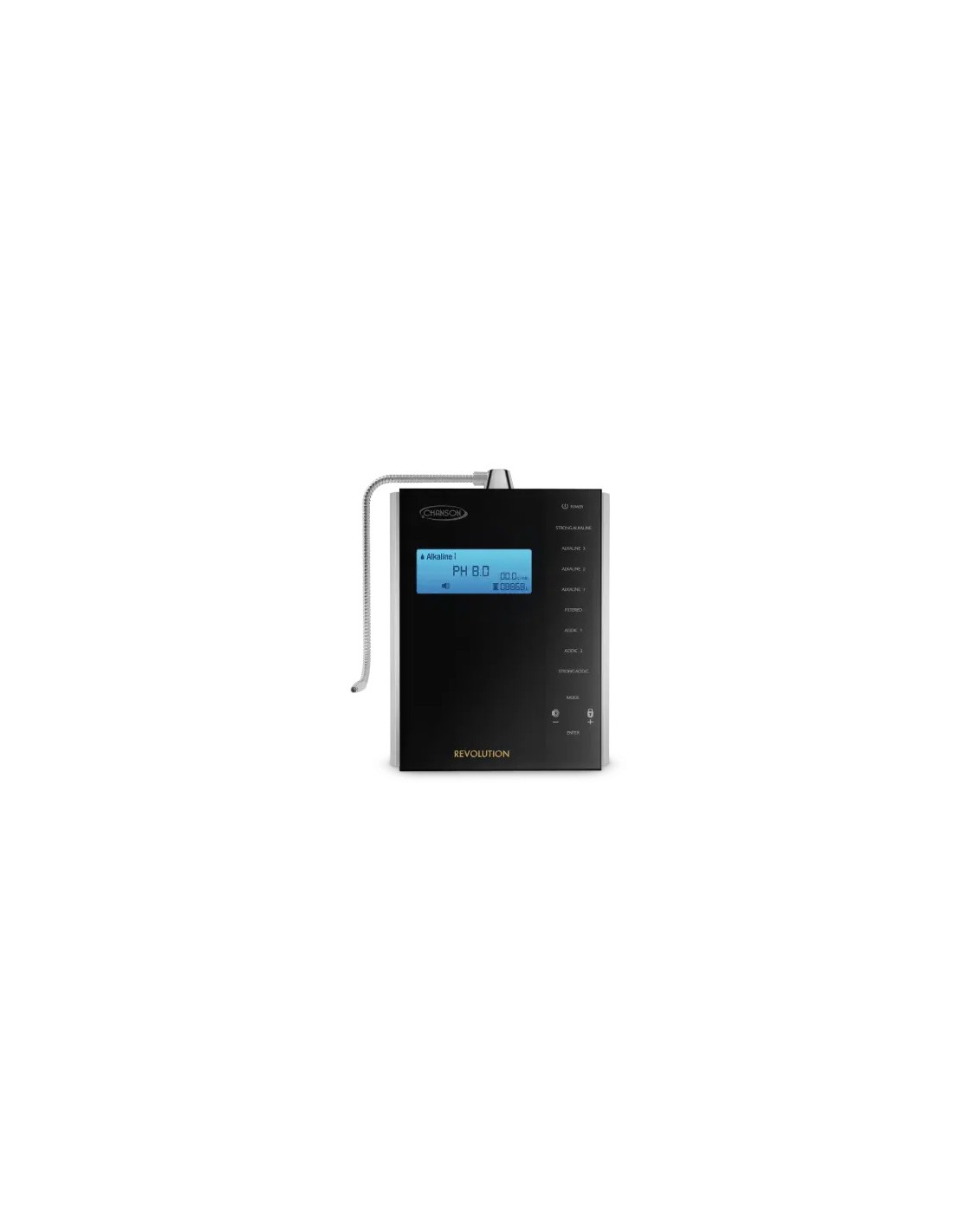 Regolazione del pH: Quattro livelli di alcalinità (Alkaline 1 – Alkaline 2 – Alkaline 3 – Strong Alkaline), tre livelli di acidità (Acidic 1 – Acidic 2 – Strong Acidic) e un livello di filtrazione (Filtered), tutti regolabili manualmente tramite il sistema touch screen.